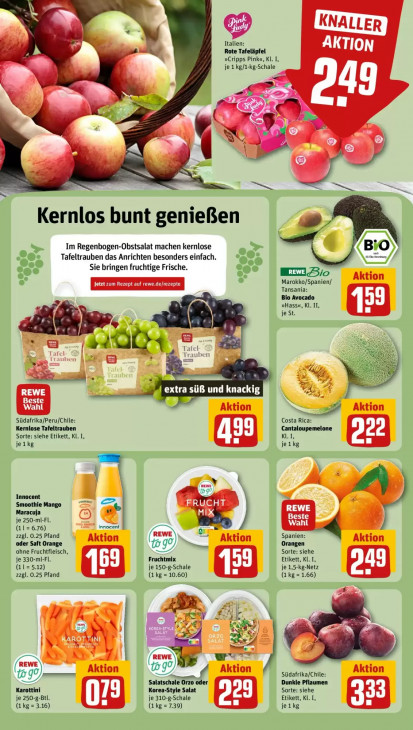 Bitte beachten Sie, dass dieser Text automatisch generiert wird und möglicherweise Fehler enthältf Italien: Rote Tafeläpfel »Cripps Pink«, Kl. I, je 1 kg/1-kg-Schale @ Jen 19 { Kernlos bunt genießen BIO Im Regenbogen-Obstsalat machen kernlose Tafeltrauben das Anrichten besonders einfach. na A Sie bringen fruchtige Frische. KELSio Marokko/Spanien/ Tansania: Bio Avocado « »Hass«, Kl. II, je St. + UE] 4 | O4 Tafel Tra ben De 4 RE 0 extra süB und k macht 13 Südafrika/Peru/Chile: Costa Rica: Kernlose Tafeltrauben Cantaloupemelone Sorte: siehe Etikett, Kl. I, KLI, jeikg jeikg dn Innocent sasenne 4 Smoothie Mango „es Maracuja je 250-mI-Fl. (11= 6.76) innocent 5 zzgl. 0.25 Pfand Ea Spanien: oder Saft Orange #90, m Orangen ‚ohne Fruchtfleisch, Sorte: siehe je 330-mI-Fl. Fruchtmix Etikett, KL. I, G1= 5.12) je 150-g-Schale je 1,5-kg-Netz zzgl. 0.25 Pfand (1kg = 1.66) Gkg= gro) x On gn Y E Cry) < wur Je 69 Südafrika/Chile: 90 Salatschale Orzo oder Dunkle Pflaumen Karottini Korea-Style Salat Sorte: siehe je 250-g-Btl. je 310-g-Schale = Etikett, KL. I, (1 kg = 3.16) (1 kg = 7.39) jeikg
