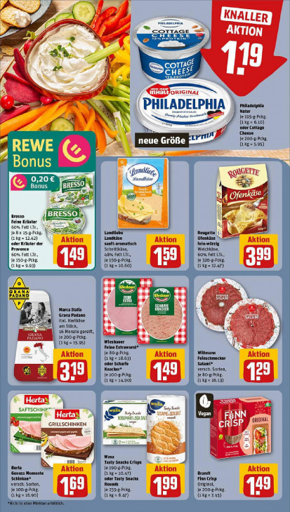 Bitte beachten Sie, dass dieser Text automatisch generiert wird und möglicherweise Fehler enthältpal COTTAGE (4 AKTION re | à GE Er COTTA 19 le HE d Eb In; Worıcınar PHILADELPHIA | mitaseis Donpes arn {Natur Partij prineher je 195-g-Pckg. (ikg= 6.10) 50 oder Cottage À Cheese sen En TA je 200-g-Pckg. B neue Größe (ukg=5.95) À hen À zl YY À | + EEE / n= B ic IS fandlieg QUGETTE Fandhäse ES fenkäse ZA KOL zn. Bresso à FA feine Kräuter = 60% Fett i.Tr. nn je 8 x 15-g-Pcke Landliebe Rougette ZEE neel (1Kg= 12,42) Aktion Landkäse Aktion Ofenkäse = Aktion oder Kräuter der sanft-aromatisch fein-wirzig Provence Schnittkäse, Weichkäse, 60% Fett i.Tr. 48% Feiti.Tf.. 60% Fett ii, je 150-g-Pckg. je 150-g-Pckg. je 320-g-Pckg. (I kg = 9.93) (i kg= 10,60) ii (Lkg= 12,47) /e\ GRA ne PADA N ö v | \Y Marca Italia Grana Padano sis à ital. Hartkäse am Stück, 16 Monate gereift, Ed je 200-g-Pckg. (ikg= 15.95) Wiesbauer Bf Feine Extrawurst® ie je 80-g-Pckg. Willmann Aktion (I kg= 18.63) Aktion Feinschmecker Aktion oder Scharfe Salami* Knacker* versch. Sorten, 46) je100-g-Pckg. je 80-g-Pckg (1 kg = 14.90) (1Kg= 16.13) Erz Es F SCHI Tat vh Ll Vegan GRILLSCHINKEN rijp ORIGINAL a, un a 2 um) y u Da dass EE ed am Wasa à Tasty Snacks Crisps Herta Aktion je 190-g-Pcke. Aktion Aktion ‚Genuss Momente (1 kg= 10.47) Brandt Schinken* oder Tasty Snacks Finn Crisp versch. Sorten Rounds ‚Original, je 100-g-Pekg. je 235-g-Pcke. je 200-g-Pckg. (1 kg = 16.90) (ikg= 8.47) (Ukg=7.45) *licht in allen Märkten erhältlich.